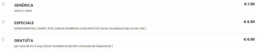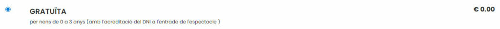 - Per a infants de 0 a 3 anys, entrada GRATUÏTA (no s’ha d’entrar codi de regal, però cal reservar l’entrada).